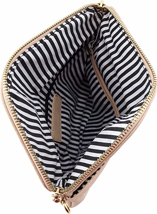 2 open pockets, 1 zipper pocket & 3 card slots inside.