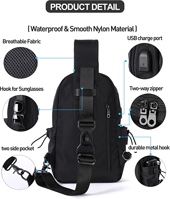 • ✅【High Quality Material】Shoulder bag for men women is made of high-quality nylon, waterproof, dirt-resistant, lighter and more easy to take care of. Shoulder backpack with excellent workmanship can show your outstanding temperament. Lightweight crossbody backpack bags sits nicely and freely on your back/chest and if this hiking bags for men gets durty, only just need wipe it off to stay it clean.